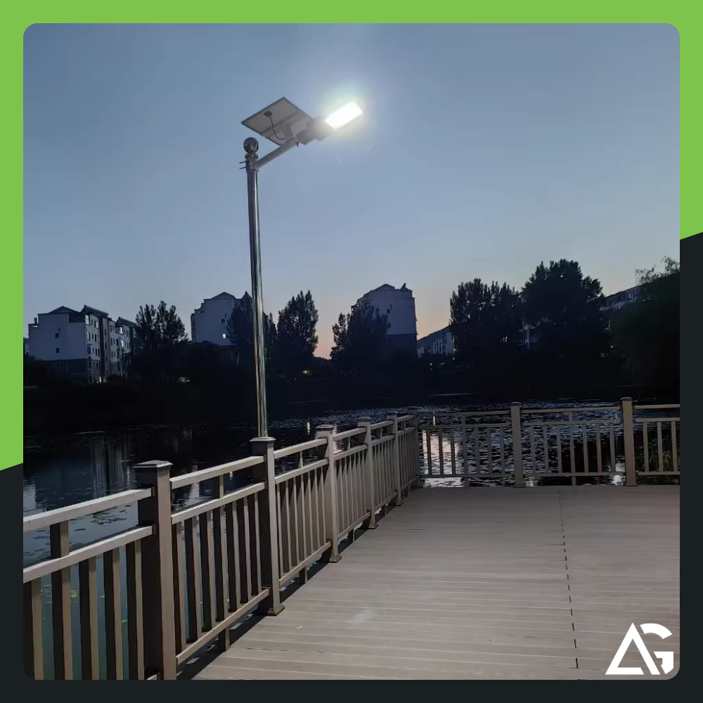 Panel solarny ładuje lampę w ciągu dnia, zapewniając energię na wieczór i noc.