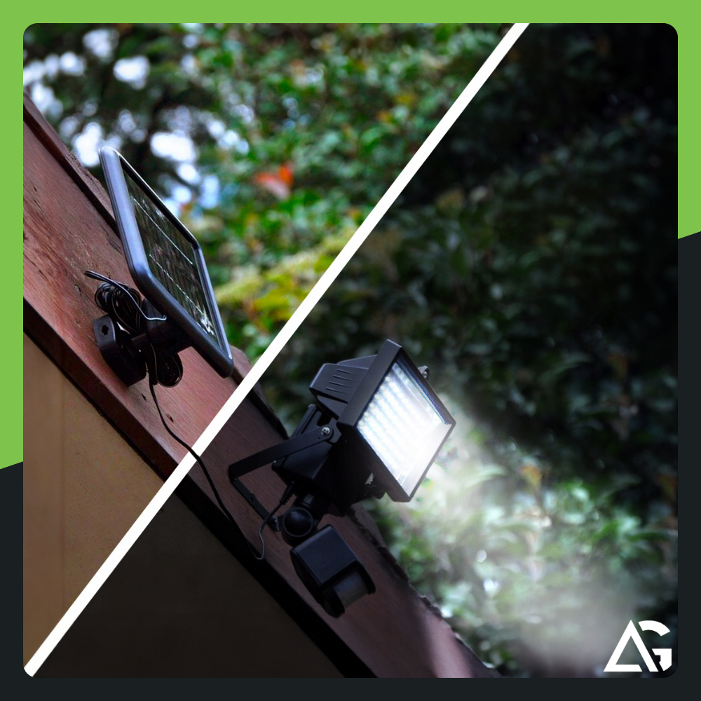 Reflektor solarny LED o dużej mocy zapewnia intensywne i szerokie oświetlenie terenu wokół domu.